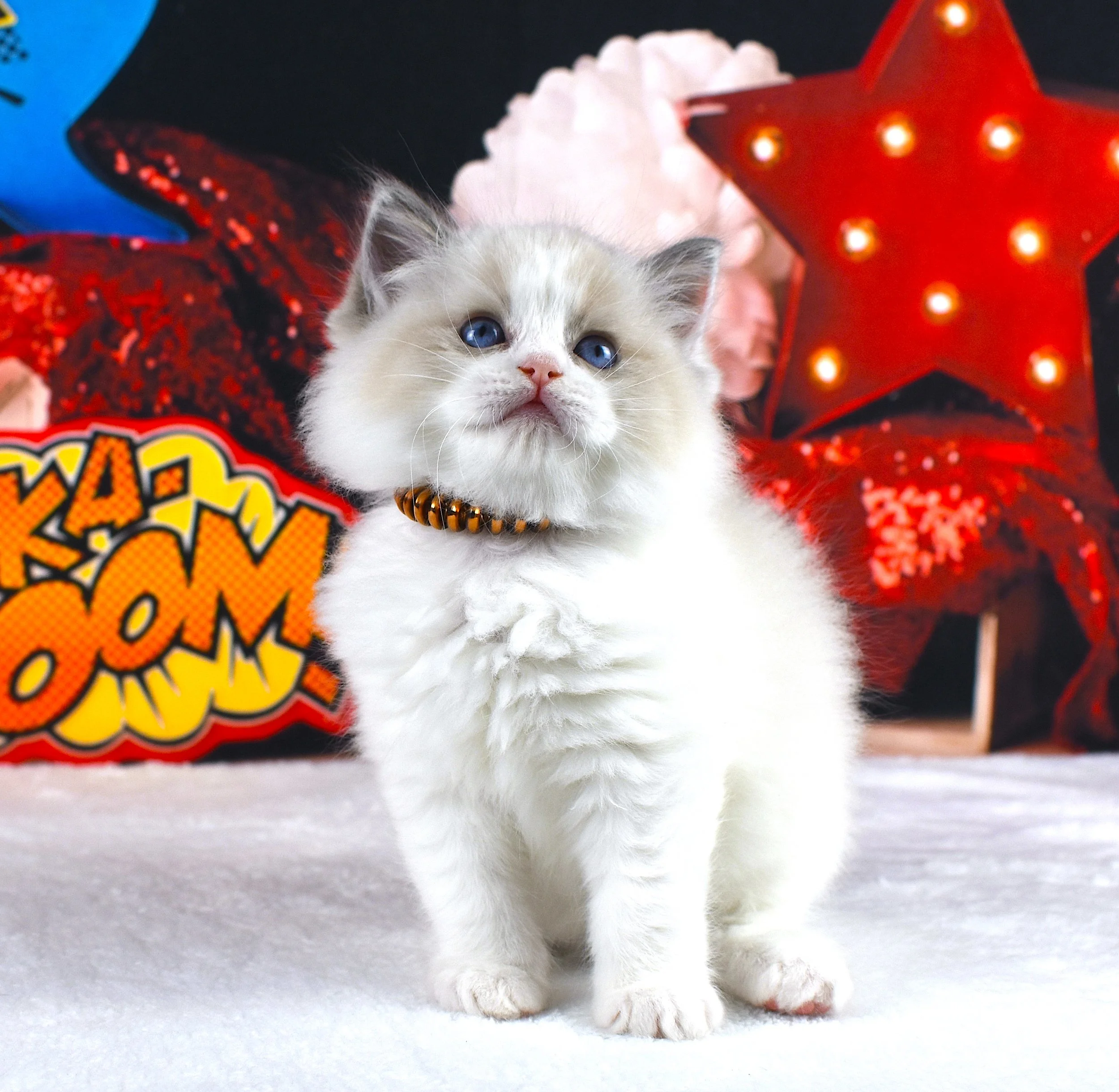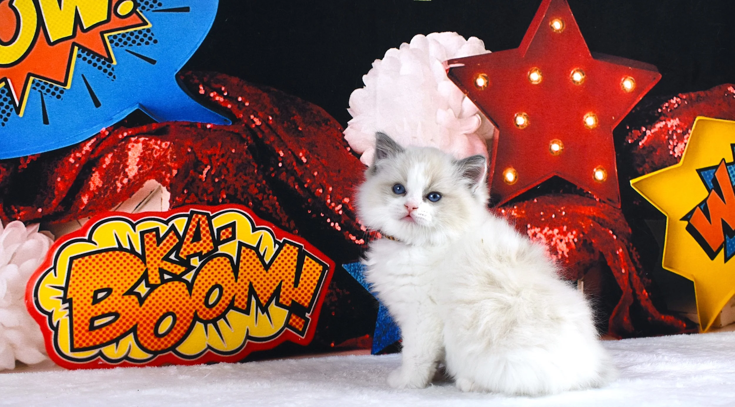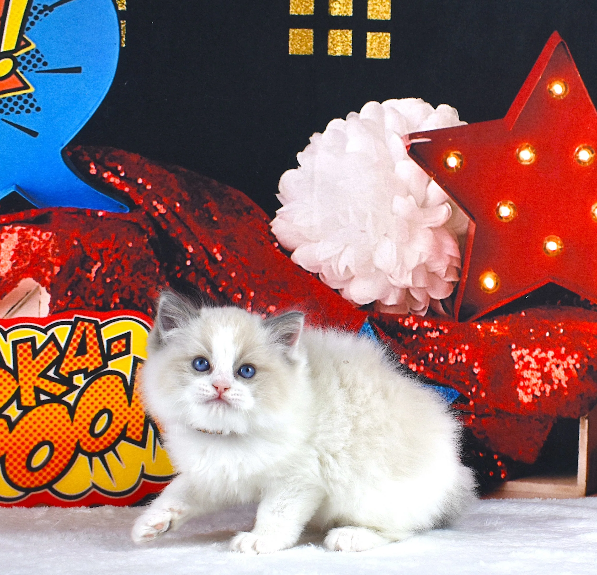 Wonder WomanRESERVED Gender: FemaleBorn: July 12, 2025Color / Pattern: Blue Point Bicolor Sire: Ulysses S. GrantDame: Gloria
